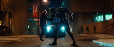 There are moments when Venom almost plays as a weird psychological thriller about a character experiencing a real-time break from reality, a reporter who is losing his fragile grip on reality after suffering one too many personal and professional setbacks. As the situation gets worse, Eddie starts hearing voices in his head and losing control of his body. He finds himself in a situation where terrible things happen, but he is able to disassociate himself from the brutality and violence. Venom never quite commits to this idea, but it simmers through the story.